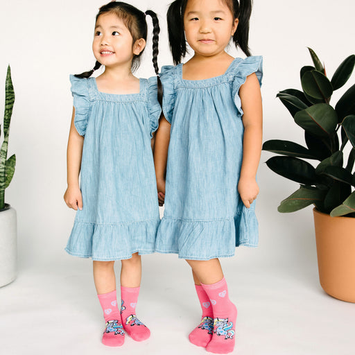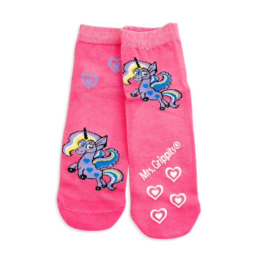 Kids Bamboo Socks with Grips - Pink Unicorn (Medium)