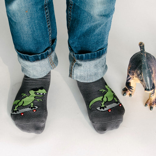 $7.00 CAD| /Skateboarding Dinosaur socks with non-slip grips for your little dinos! Get matching t-rex pairs for all your littles with sizing up to 9 years old...